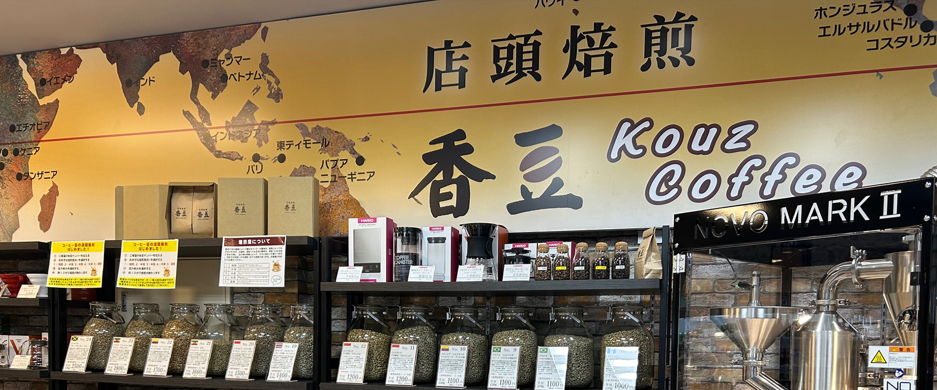 最新鋭の熱風焙煎機NOVO MARKⅡにて注文の都度焙煎を行っています。